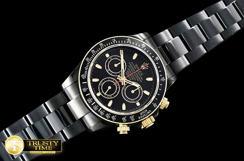 | 다이얼 컬러 | Black Dial with Gold Rimmed Subdials with Gold Stick Markers |