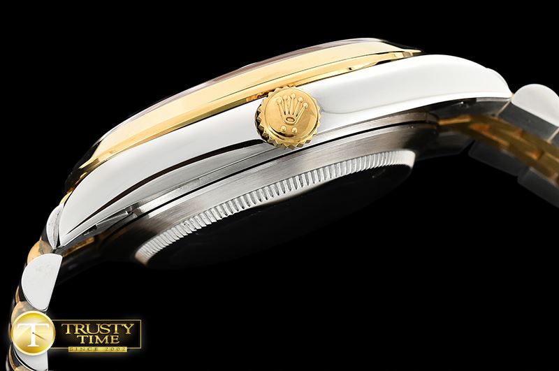 | 밴드 소재 | 18K Two Tone Yellow Gold Gold Wrapped (15-20 mils) on Solid Stainless Steel 316F Jubilee Bracelet with New Style Rolesor 폴딩형 디버클 |