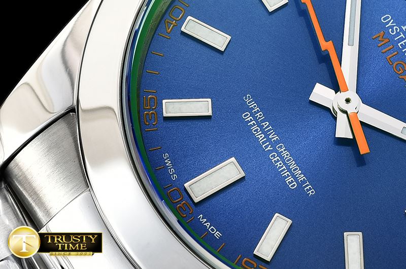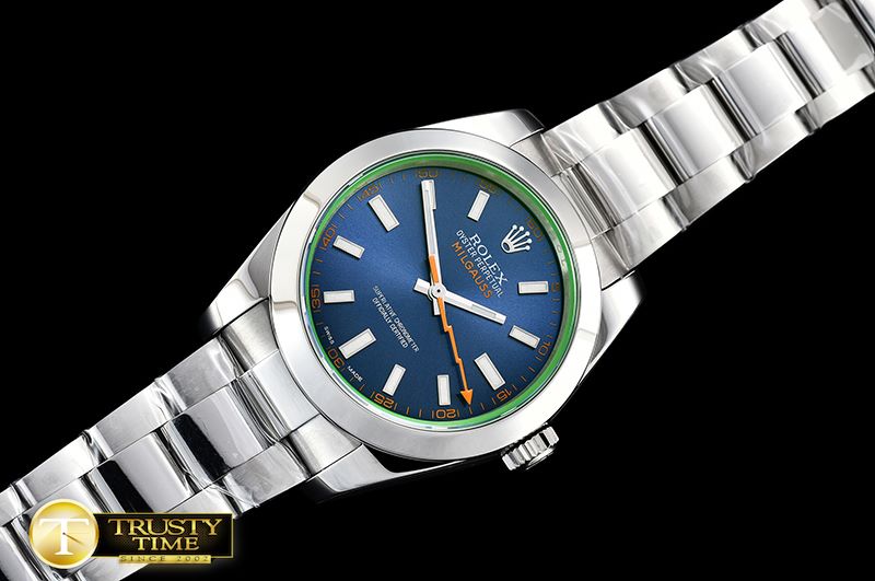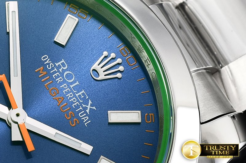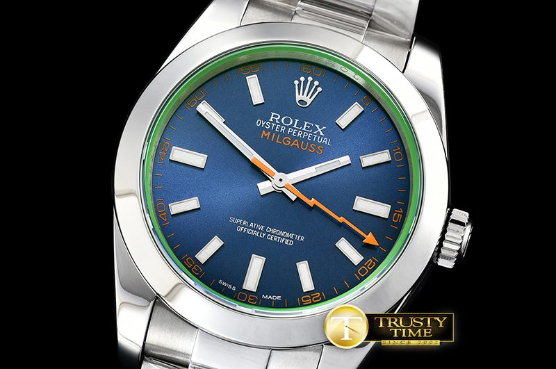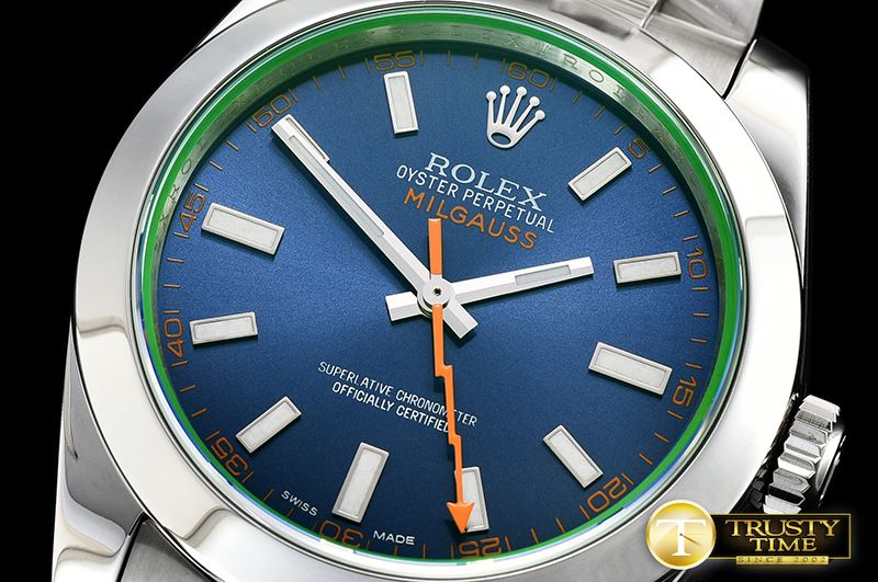 | 다이얼 컬러 | New Milgauss Z Blue Dial (Swiss Grade Superlume Blue on Broad Markers and Superlume Green on the other markers) - Dial has exact markings like Genuine even on the base plate (Vintage style Orange Lightning Hand) |