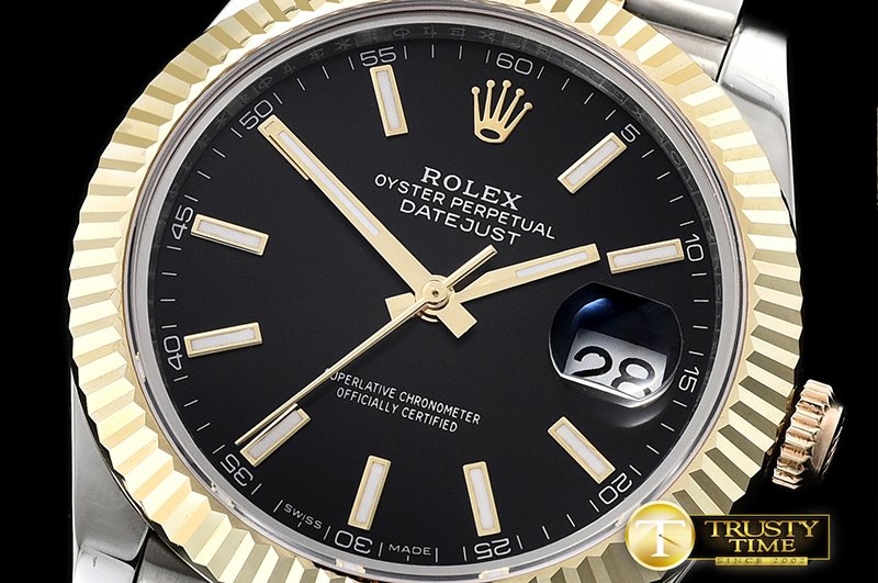 | 밴드 소재 | 18K Two Tone Yellow Gold Wrapped (15-20 mils) on Solid Stainless Steel 316F Jubilee Bracelet with New Style Rolesor 폴딩형 디버클 (Mid-links are also gold colored if viewed from the sides of the bracelet) |