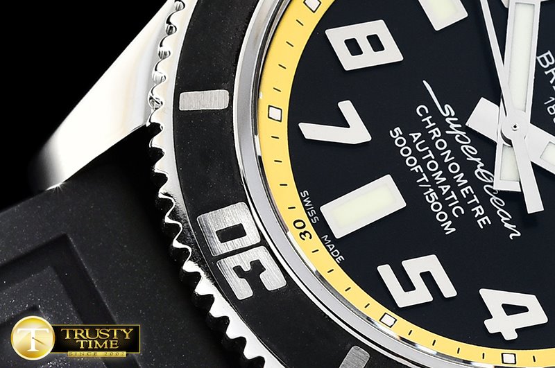 | 다이얼 컬러 | Black Dial with Thick Lume & Numeral Markers with Yellow Rehaut (With Swiss Grade SuperLume applied) |