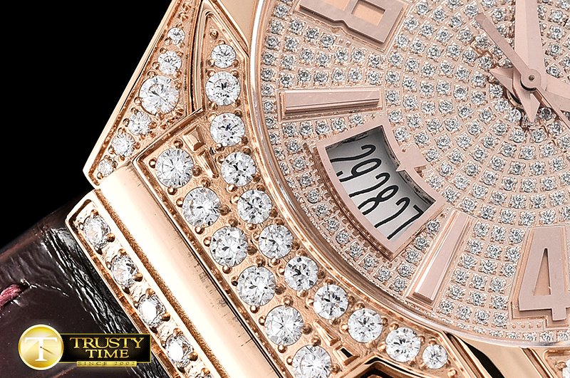 | 다이얼 컬러 | Full Paved Diamonds Rose Gold Dial with Stick & Numeral Markers |