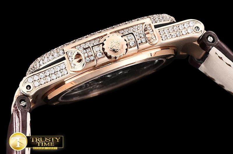 | 밴드 소재 | Brown Croc Print Calf Leather Strap with|폴딩형 디버클 (Full Diamonds Encrusted) |