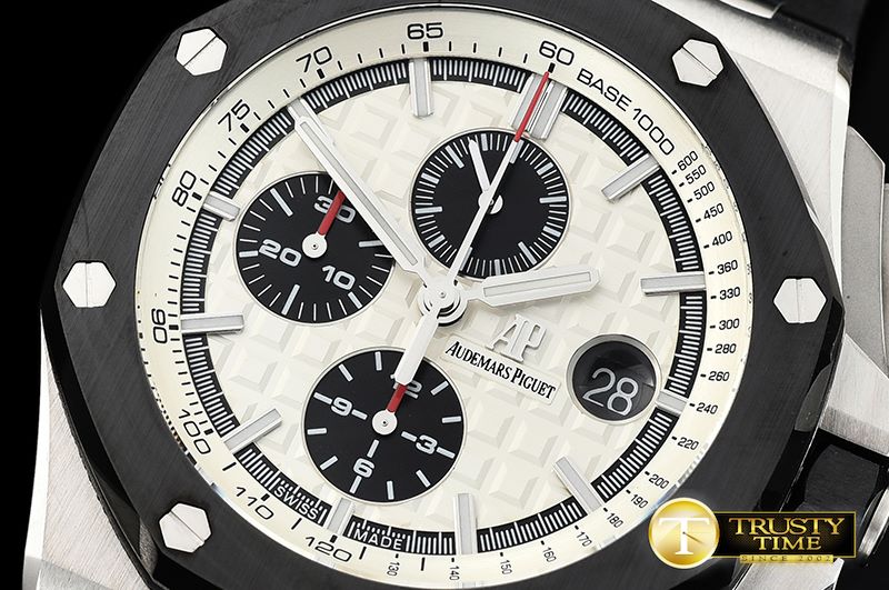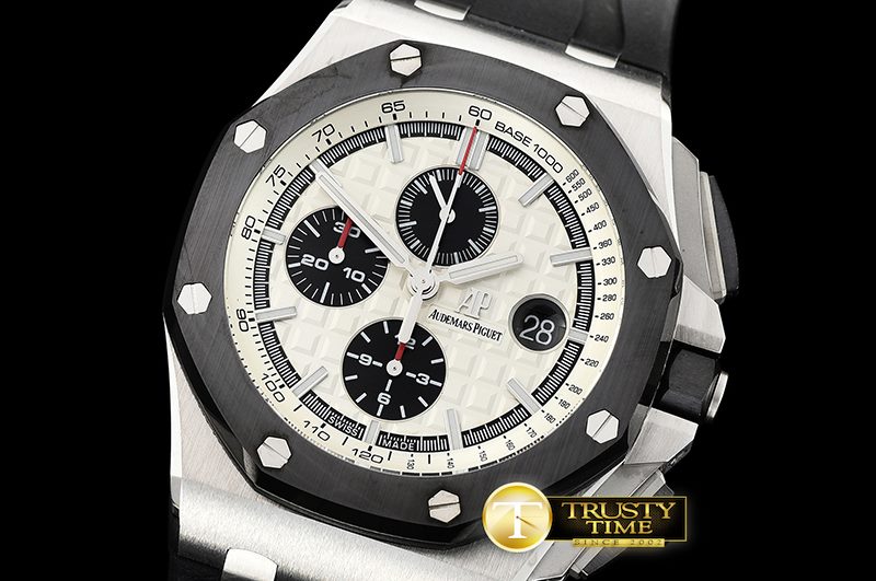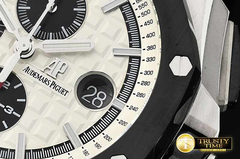 | 특징 | JF Factory AP Royal Oak Offshore Novelty Ceramic White V2|**Updated V2 model has improvements as below :|1. Updated Bezel with Brushed Finish|2. New Cyclops upgrade which makes magnification better|3. Better engraved case-back |