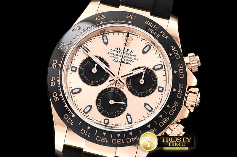 | 다이얼 컬러 | Rose Gold Dial with Black Subdials & Stick Markers (With Swiss Grade Blue Superlume Applied) |