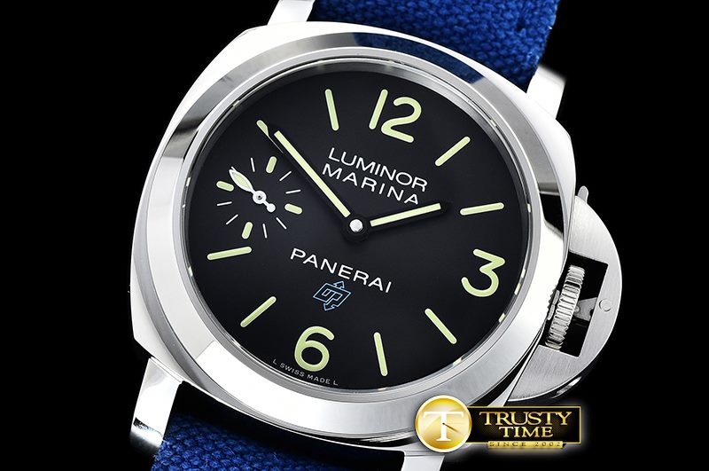 다이얼 컬러 Black Dial with Stick/Numeral Markers with Blue Panerai Logo|Remarks : Superluminova C3 on the lume dots & needles