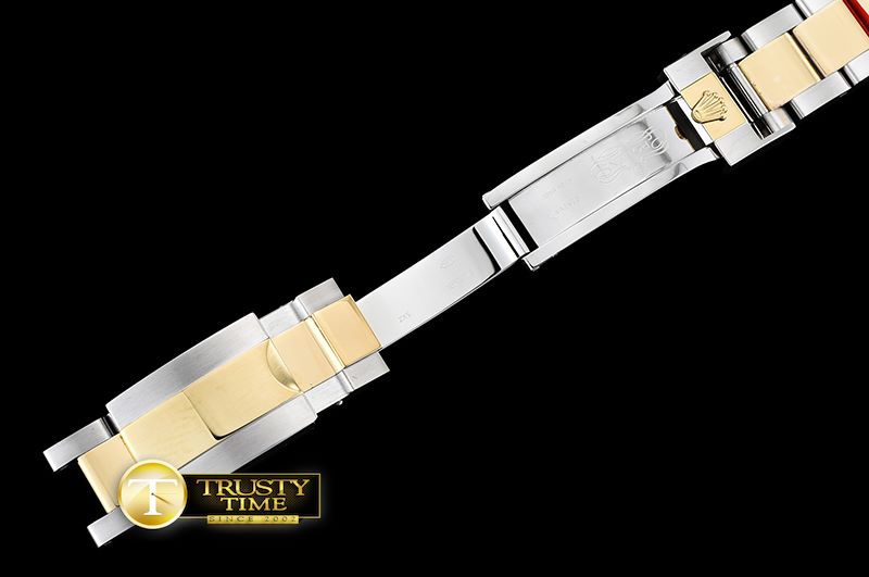 | 밴드 소재 | Two Tone 18K Yellow Gold Thick Plated (5 mils) on 고강도 스테인레스 스틸 904L 플립 락 폴딩형 디버클 |