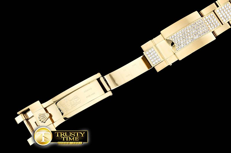 | 제품 소재 | 18K Yellow Gold Thick Plated (5 mils) on 고강도 스텐레스 스틸 316F (피부트러블이나부식없음) (Diamonds Encrusted on Lugs) |