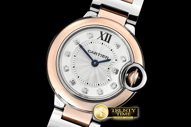 CARTIER Balon Bleu Ladies 28mm RG/SS Wht Diam V6F V2 Swiss Qtz