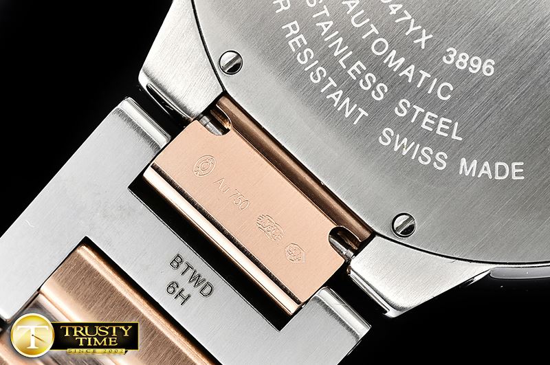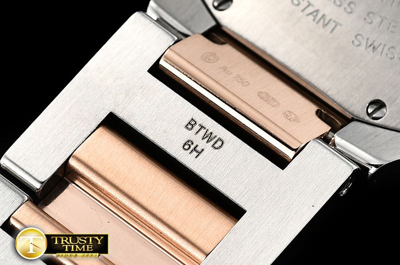 | 밴드 소재 | Two Tone 18K Rose Gold Thick Plated (5 mils) on 고강도 스텐레스 스틸 316F (피부트러블이나부식없음)|with 폴딩형 디버클 |