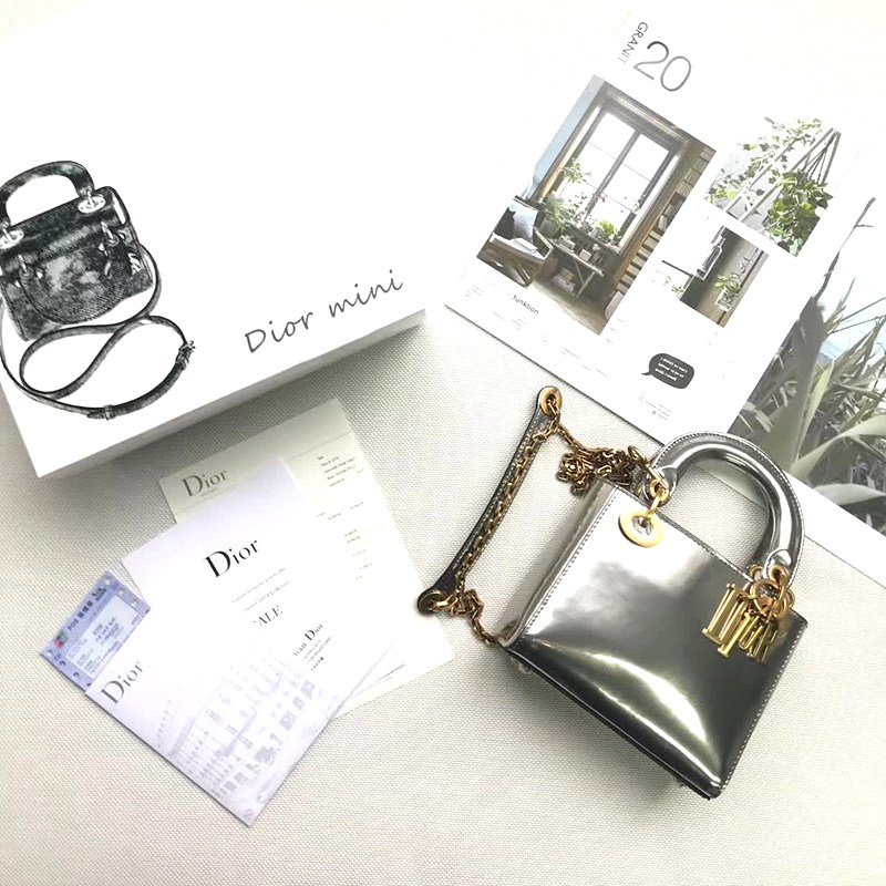 • 디올 메탈릭 카프스킨 미니 Lady dior 백 M0598 실버