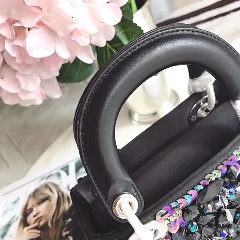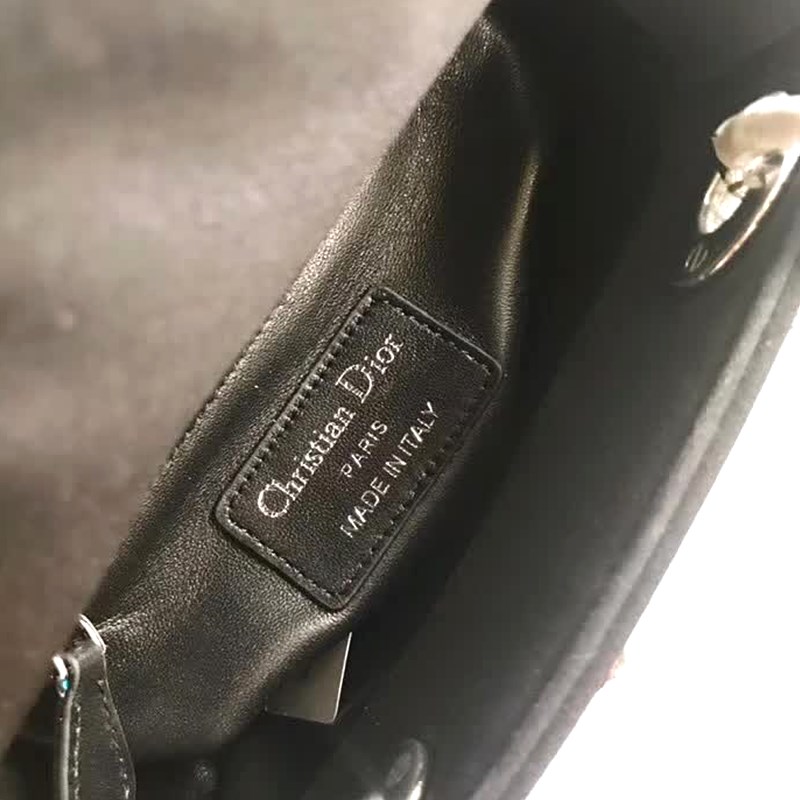 MINI LADY DIOR BAG IN EMBROIDERED CALFSKIN AM0505 black