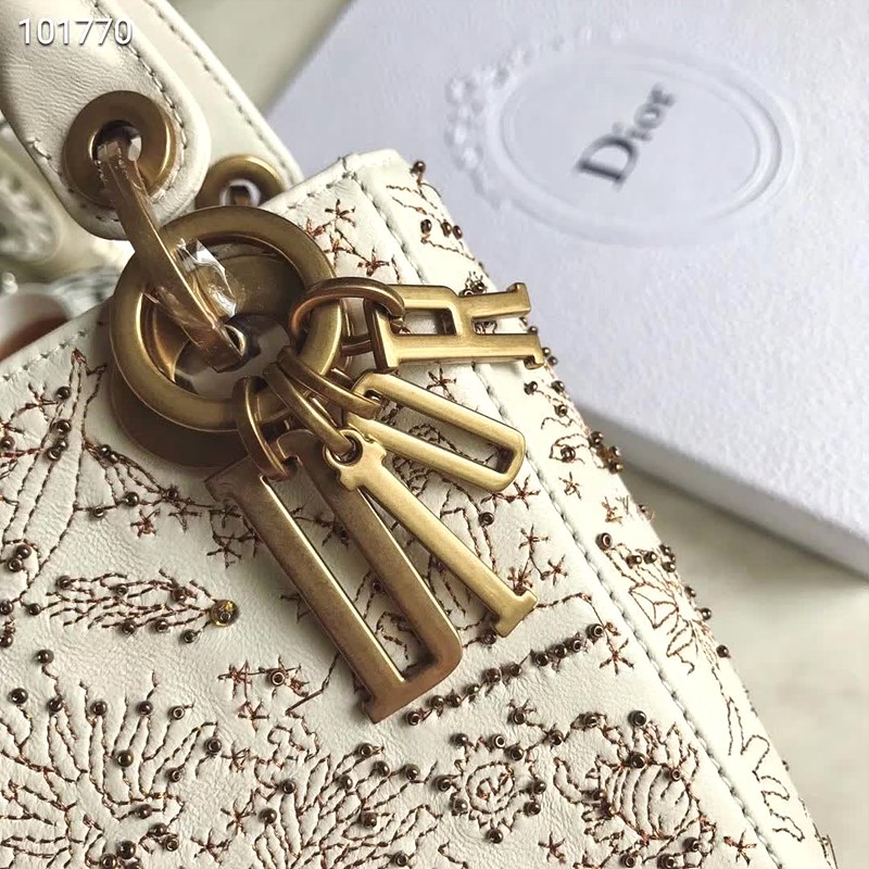 Dior original embroidered calfskin lady dior bag 50050 white