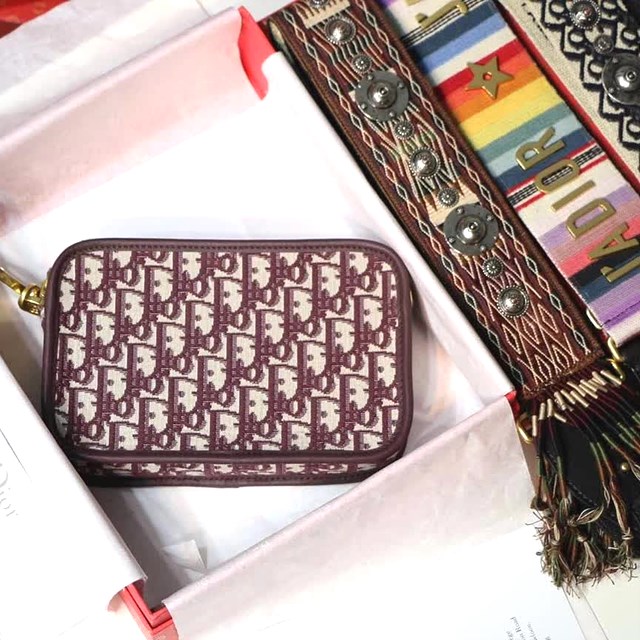 • 디올 블루 패브릭 퀘이크 클러치 백 버건디
