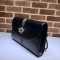 라자 미디엄 숄더백. 가죽 소재로 2019 봄/여름 컬렉션에서 새롭게 선보이는 스타일. 패션 디자이너 겸 주얼리 디자이너 해티 카네기(Hattie Carnegie)의 1940년대 아카이브에서 영감을 받은 유색 에나멜과 크리스털 디테일의 타이거 헤드. 짧은 체인 스트랩과 하우스의 시그니처 그린/레드 웹(Web) 디테일의 긴 숄더 스트랩을 포함한 두 개의 스트랩