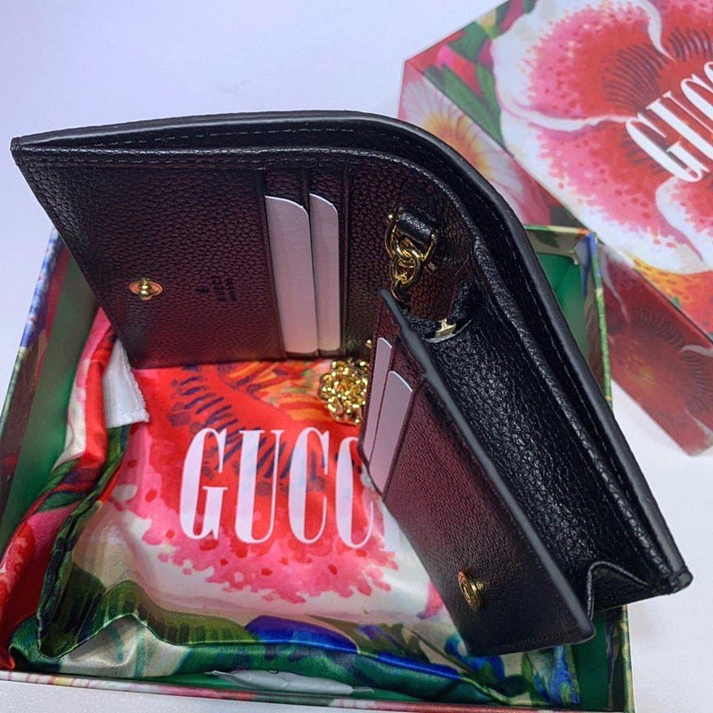 Gucci Zumi grainy leather card case 그레이니 가죽 카드 케이스. 구찌만의 스타일이 묻어나는 형태로 선보이는 하이브리드 디자인. 탈착 가능한 체인 스트랩. 하우스를 대표하는 두 개의 시그니처 코드를 결합하여 완성한 인터로킹 G 홀스빗 디테일. 다양한 영감을 불러 일으키는 파리의 테아트르 르 팔라스에서 소개된 구찌 주미 라인. 2019 봄/여름 컬렉션에서 직접 핸드백을 들고 런웨이에 선 배우 겸 실험음악 뮤지션 주미 로소우(Zumi Rosow)에서 따온 이름 샤이니 골드 및 실버 톤 메탈 장식 무아레 안감 아카이브 아이템에서 영감을 받아 탄생한 인터로킹 G 홀스빗. 하우스의 가장 유서 깊은 모티브 두 개와 메탈을 조합하여 선보이는 디자인. 5개의 카드 슬롯 내부 오픈 포켓 내부 지퍼 포켓 탈착 가능한 메탈 체인 10cm 드롭 스냅 잠금장치 열림: 가로 11cm x 세로 7.5cm 닫힘: 가로 11cm x 세로 8.5cm x 너비 3cm