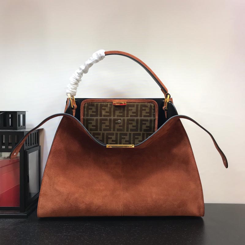 글레이즈드 패브릭 소재로 피니싱된 내부 포켓과 브라운 색조의 자카드 FF 모티브