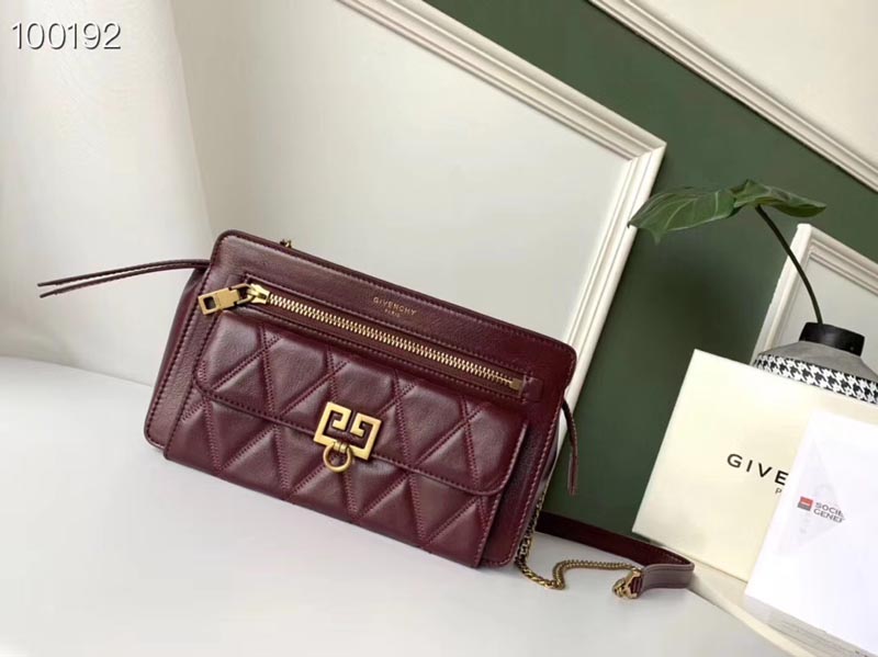 • 지방시 스무스 퀄트 카프스킨 스몰 숄더 백 버건디