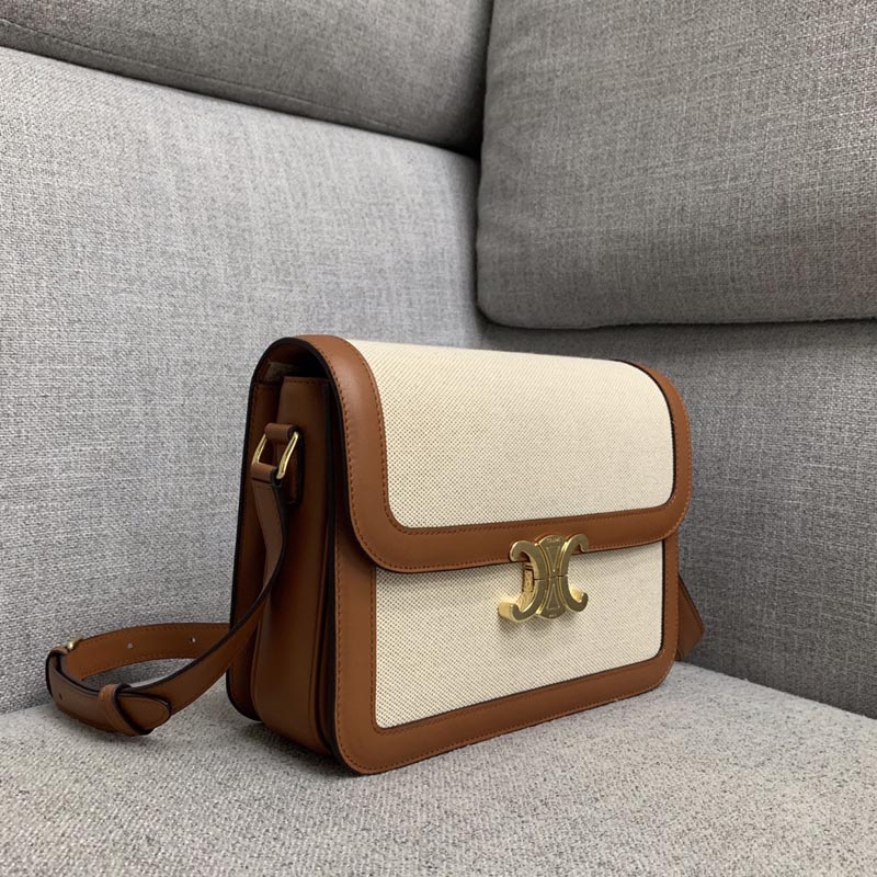 CELINE LARGE TRIOMPHE BAG IN TEXTILE AND NATURAL CALFSKIN