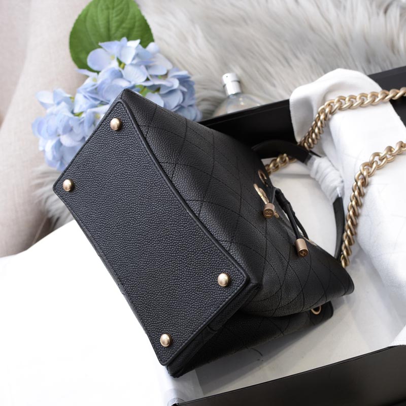 • 샤넬 쉐브론 탑핸들 버킷백 블랙