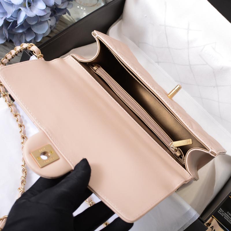• 샤넬 A98572 램스킨 판타지 라이트골드 메탈 진주 플랩 백 핑크