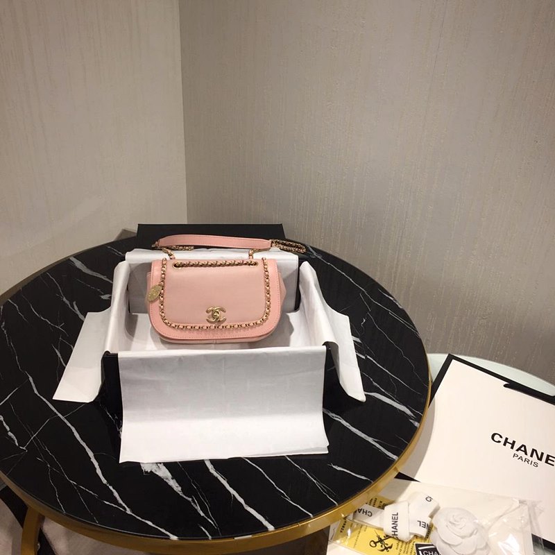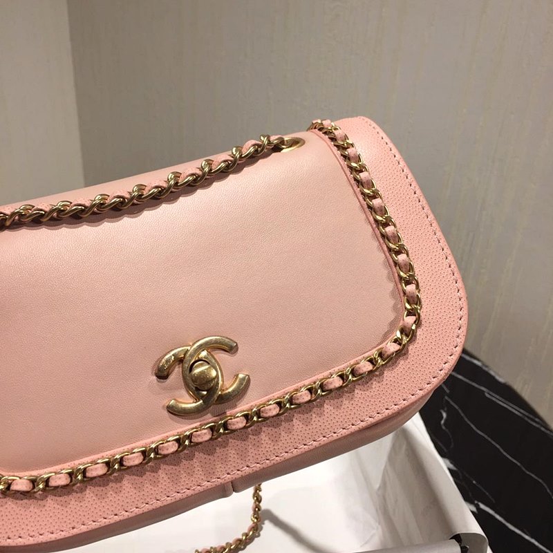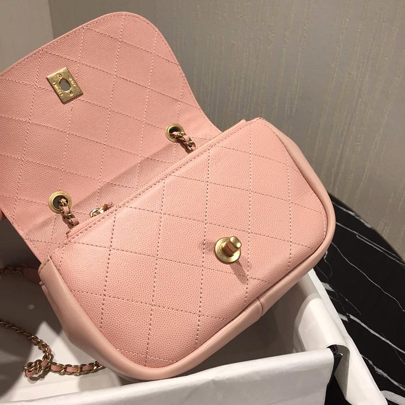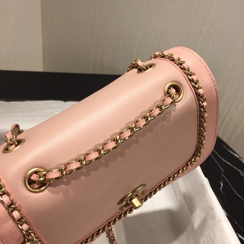 • 샤넬 AS0371 램스킨 골드메탈 플랩백 핑크