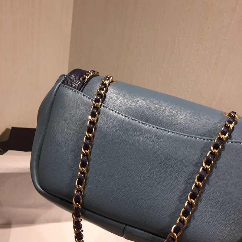 • 샤넬 AS0371 램스킨 골드메탈 플랩백 블루