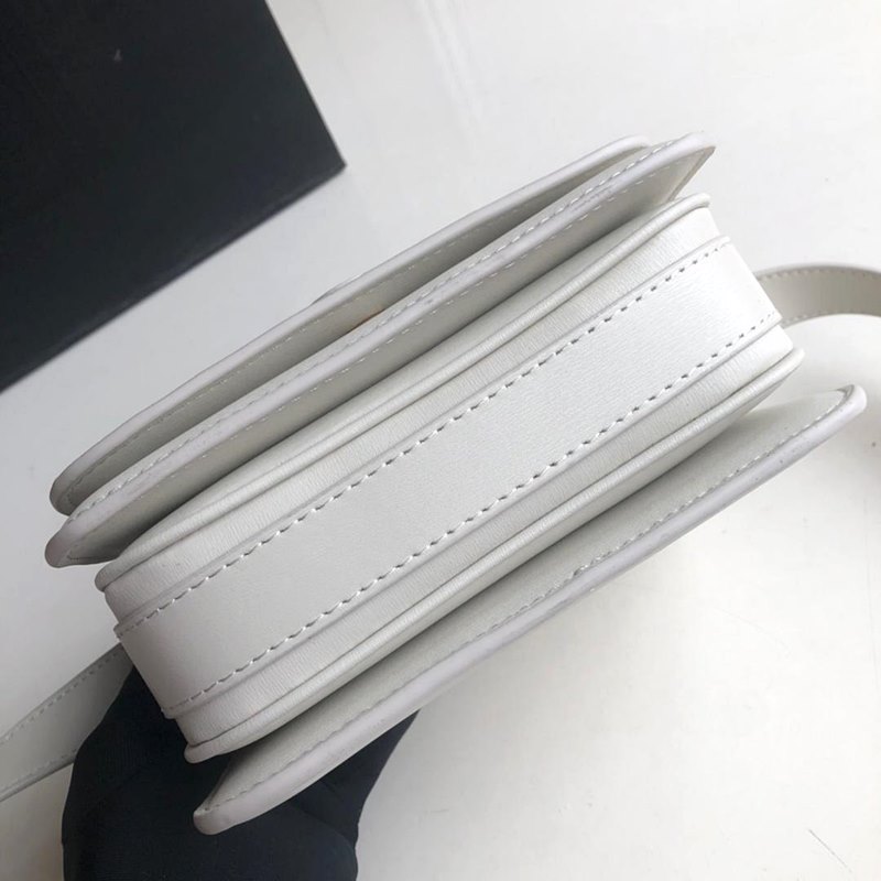 • 생 로랑 568568 화이트 송아지 가죽 LE 61 미디엄 새들백