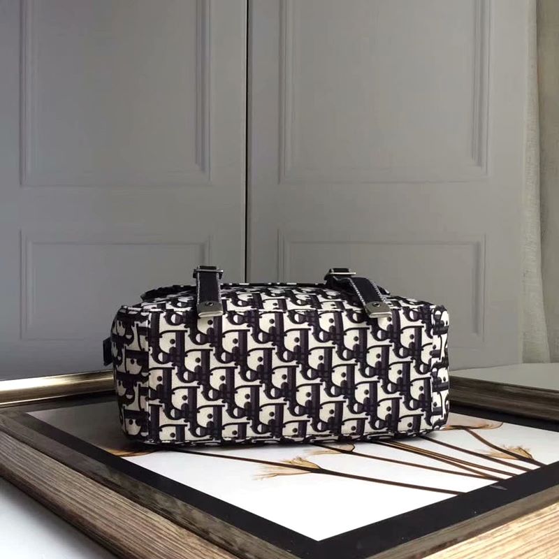 네이비 Dior Oblique 자수 장식 패브릭 메신저 백
