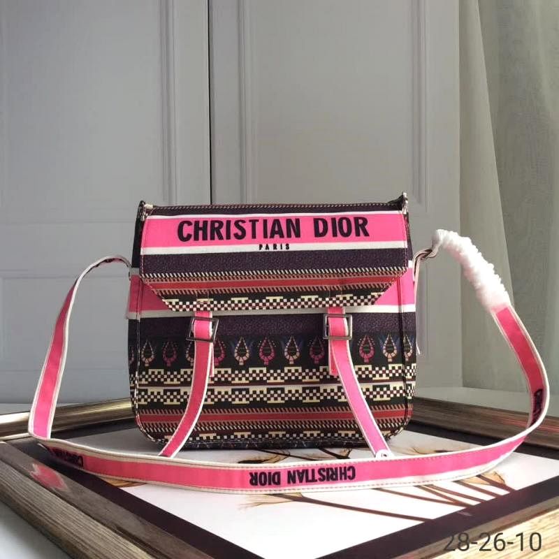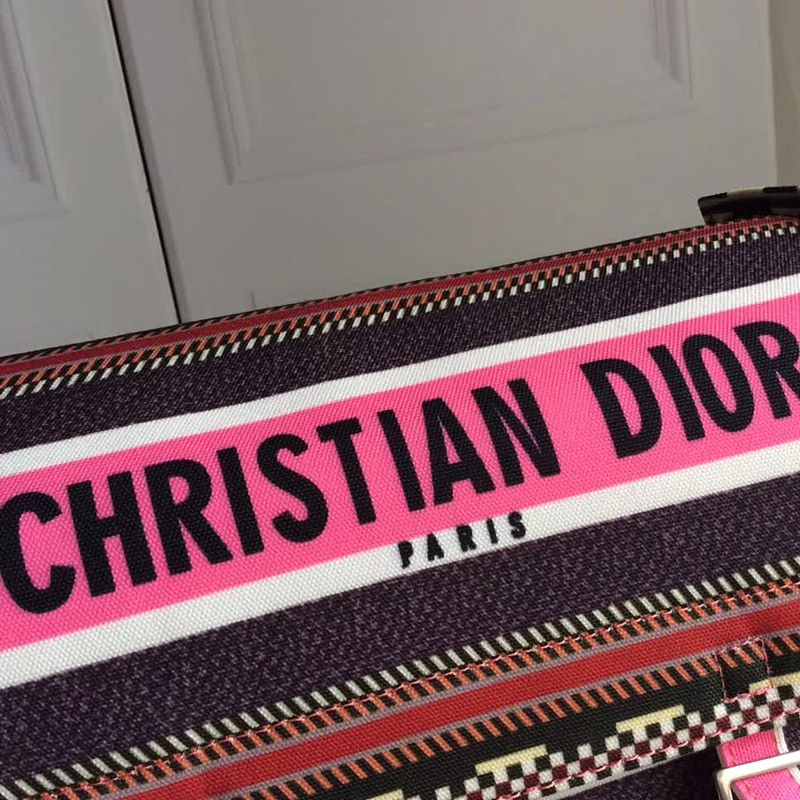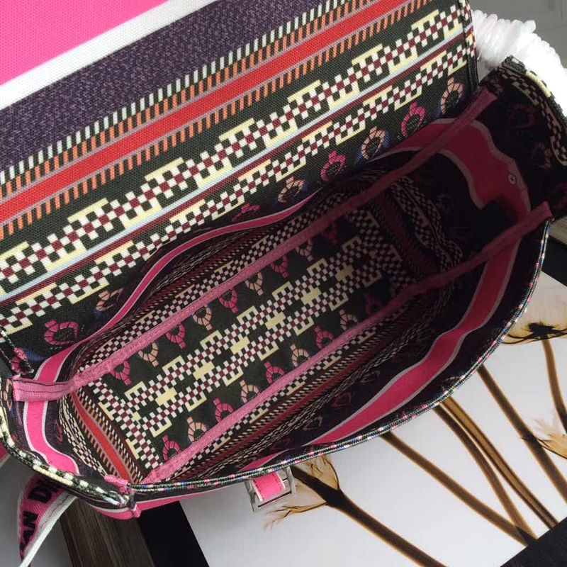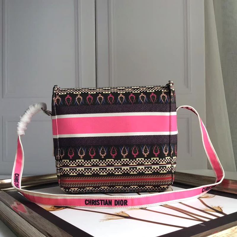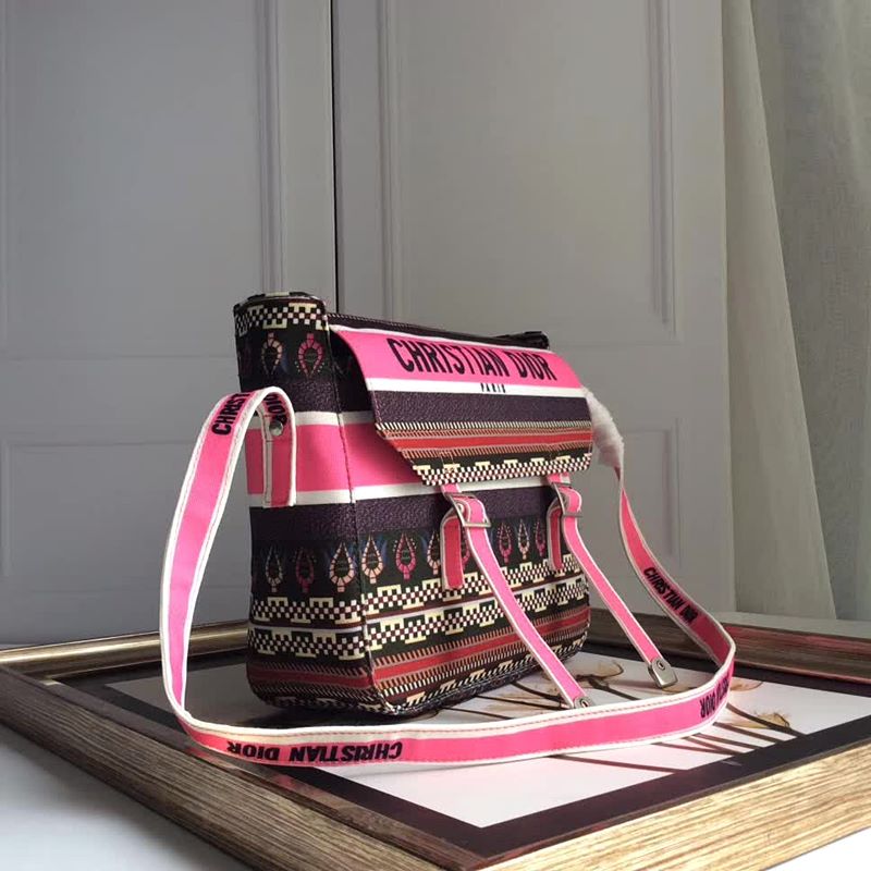 핑크 Dior Oblique 자수 장식 패브릭 메신저 백