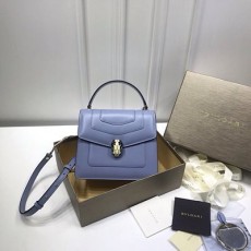 세르펜티 포에버 크로스 백 글래시어 터콰이즈 컬러의 카프 레더 소재 바디와 애스터 아메시스트 컬러의 카프 레더 소재 측면 블랙 오닉스가 장식된 뱀 눈과 글래시어 터콰이즈/캔디 쿼츠 컬러의 에나멜로 포인트를 준 황동 라이트 골드가 도금된 스네이크 헤드 잠금장치