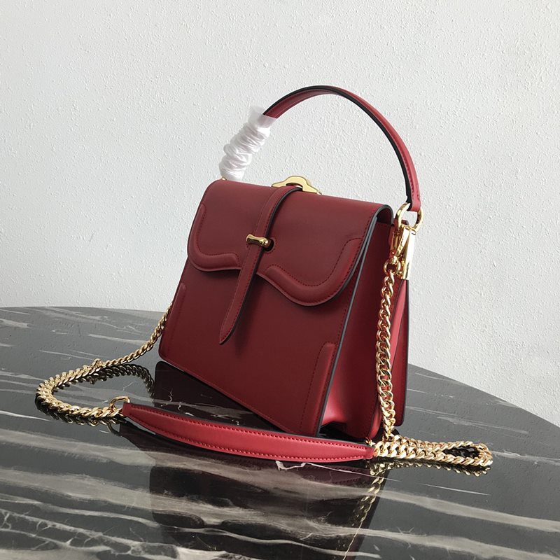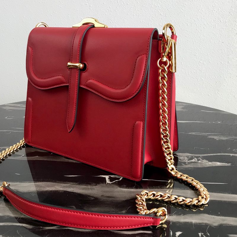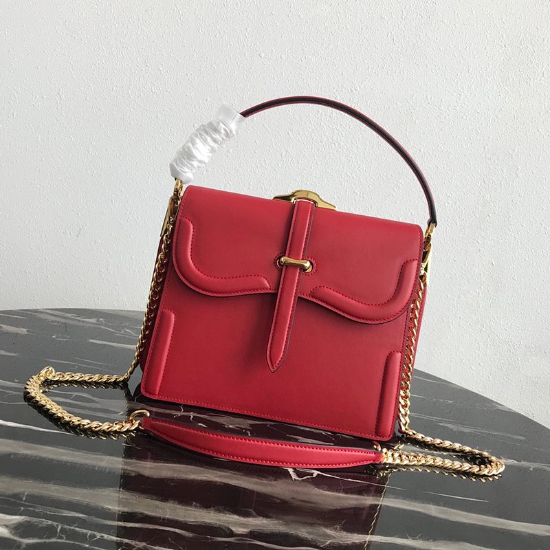 • 프라다 1BN004 벨 가죽 숄더 백 레드