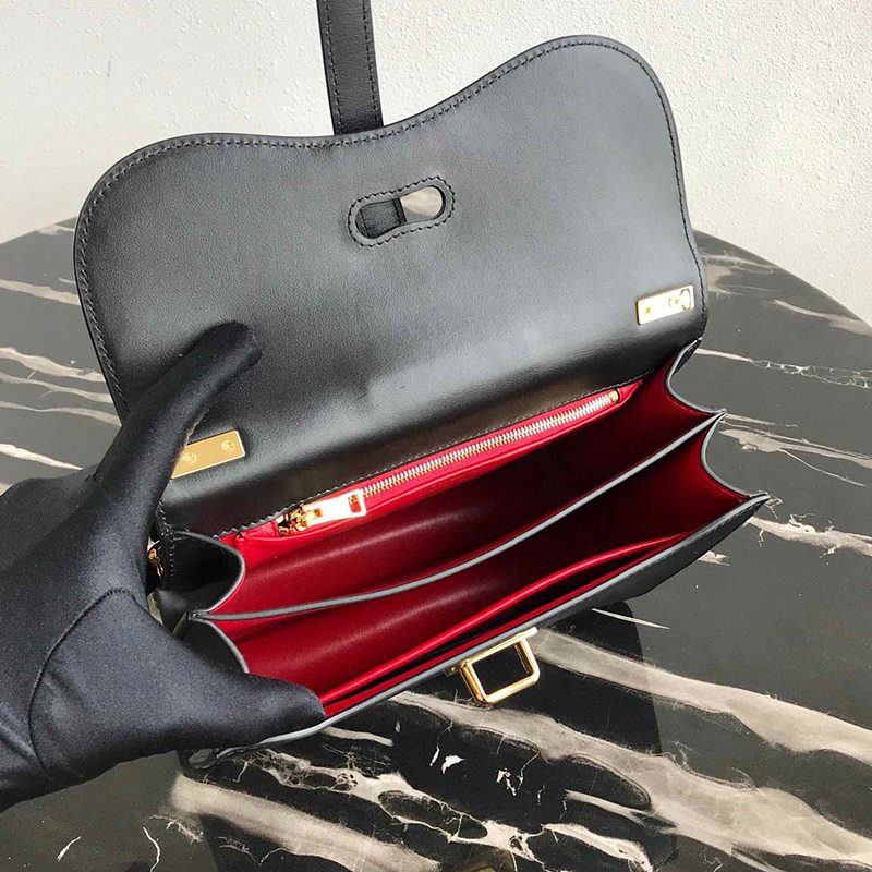 • 프라다 1BD188 벨 가죽 숄더 백 블랙/핑크