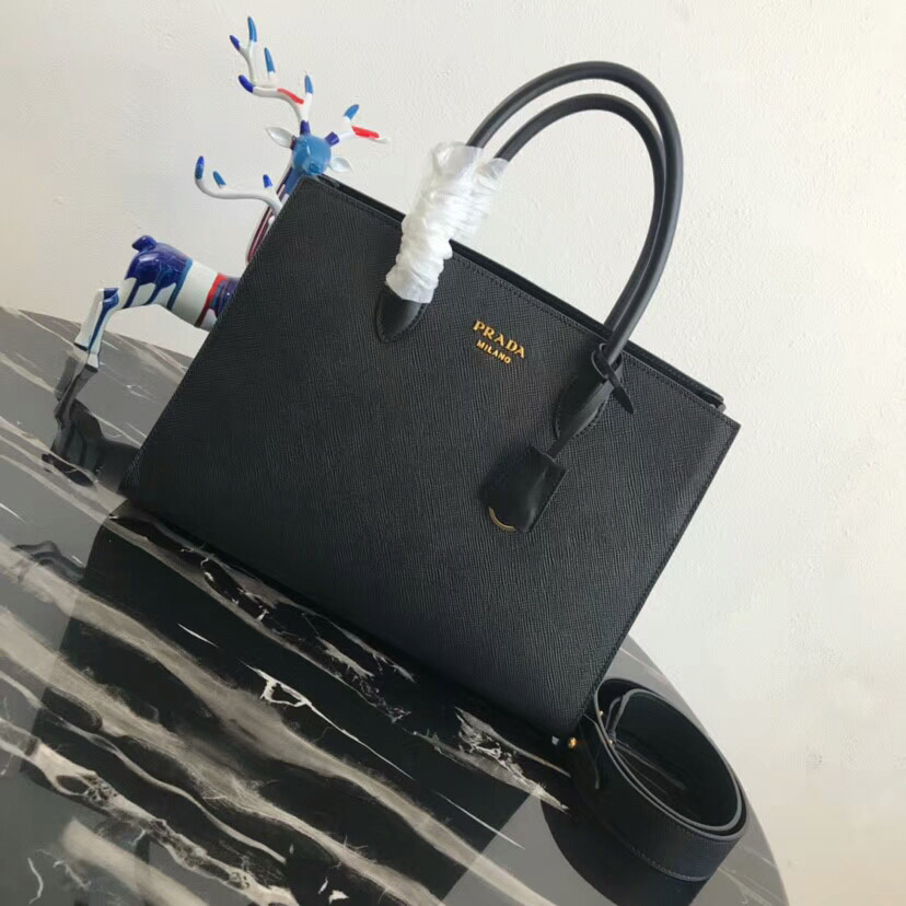 • 프라다 사피아노 가죽 라지 토트 백 1BA153 블랙