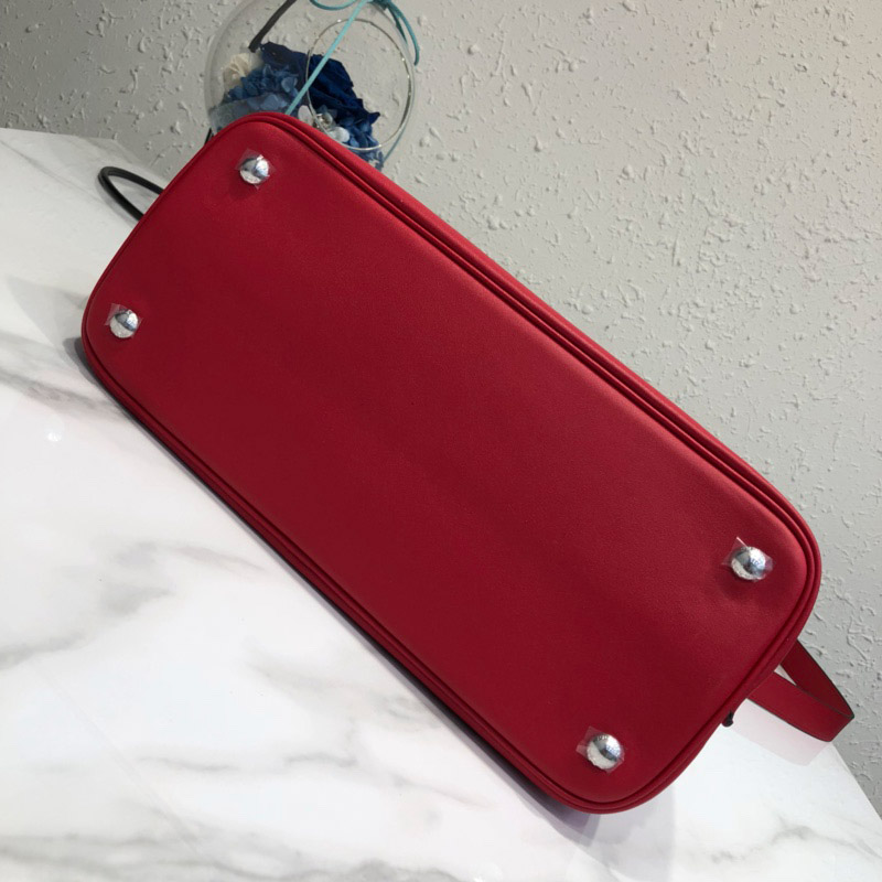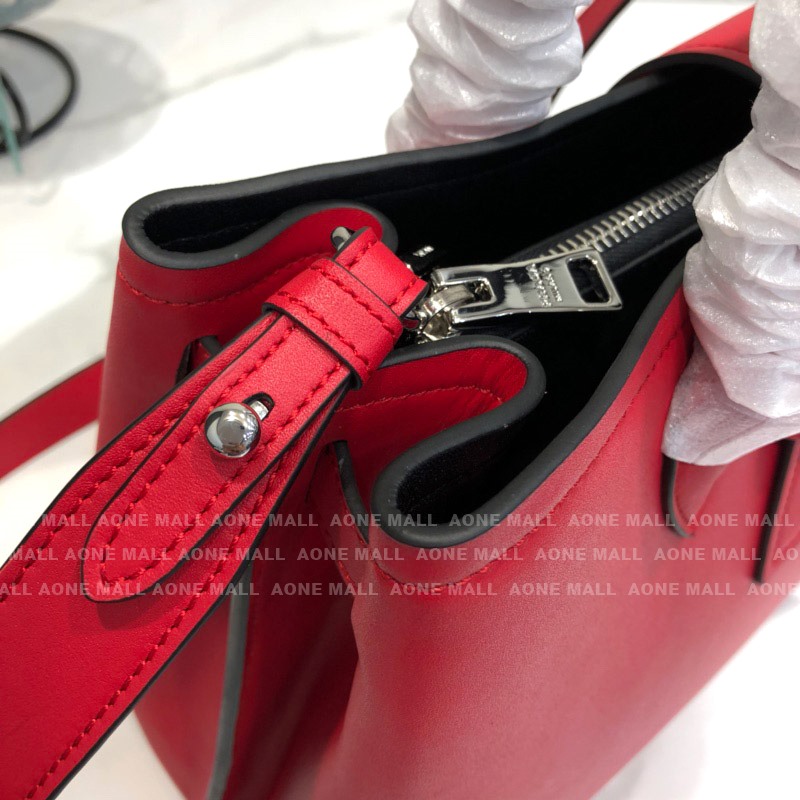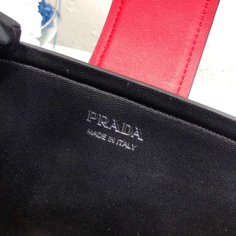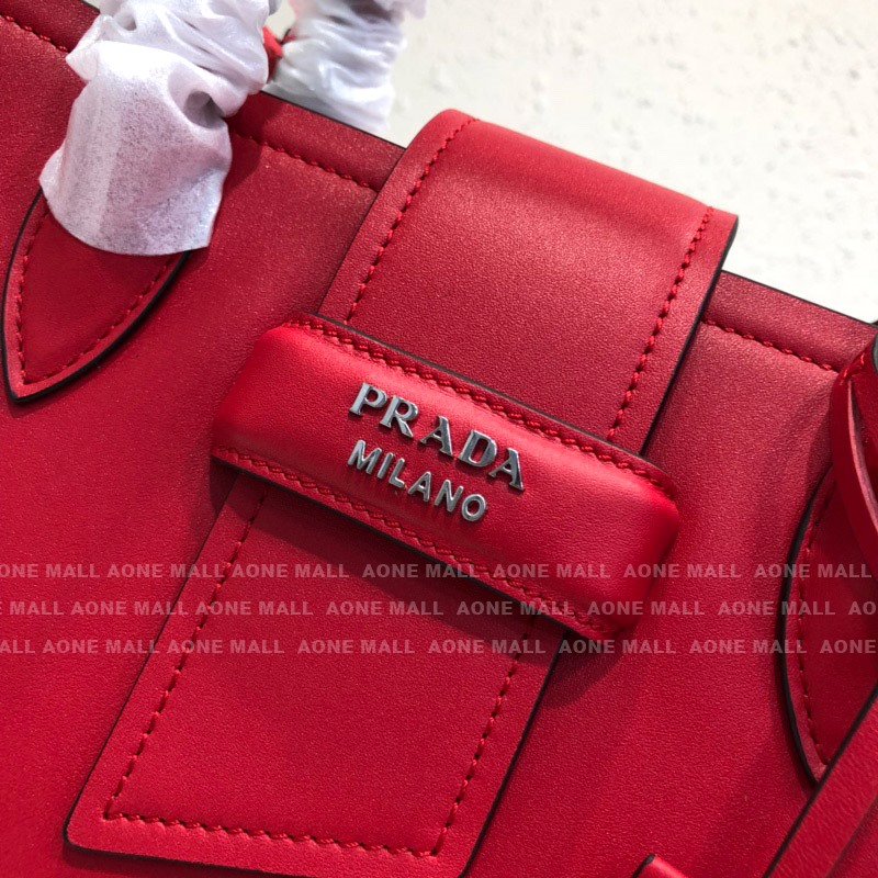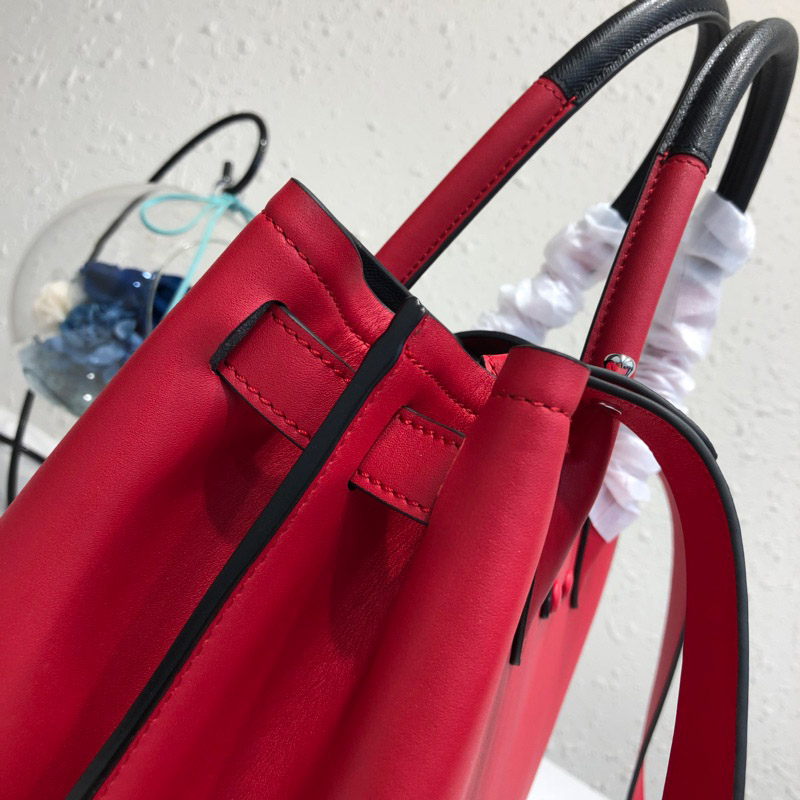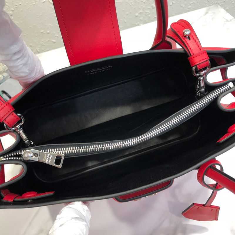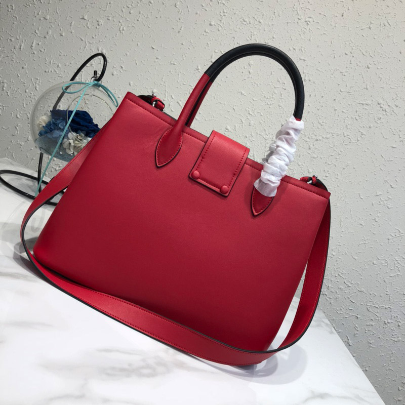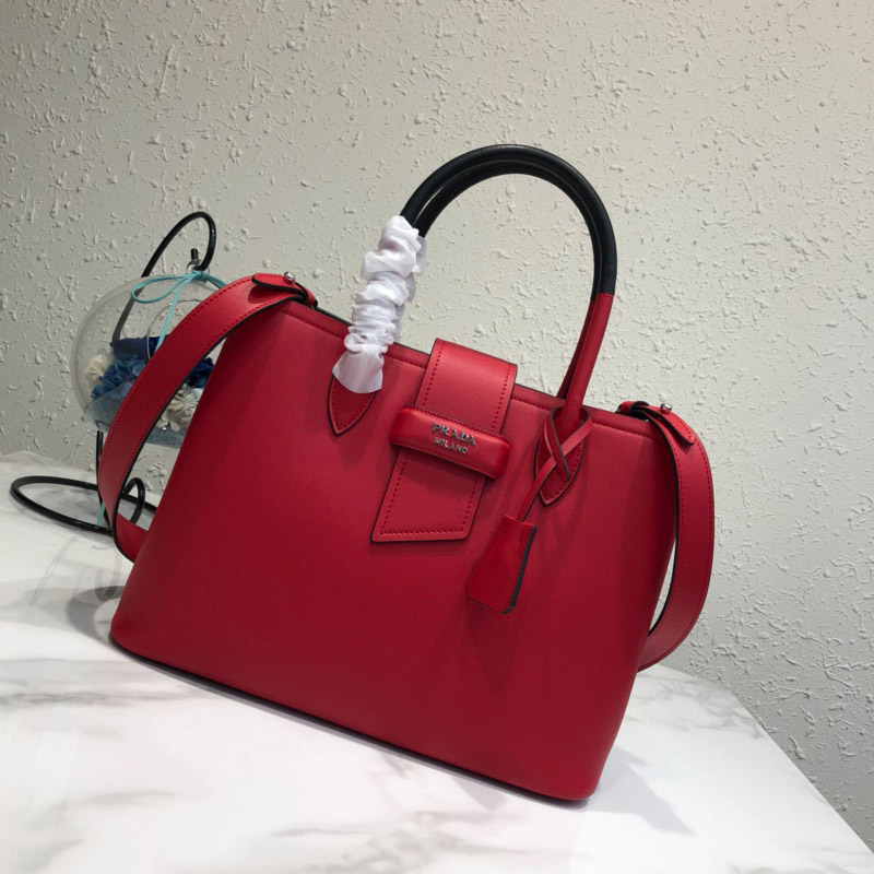 • 프라다 송아지 가죽 투톤 가죽 핸들 핸드백 1BG148 레드/실버