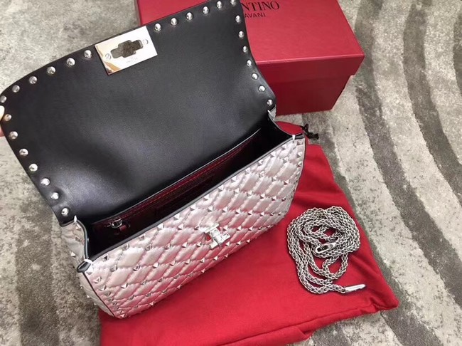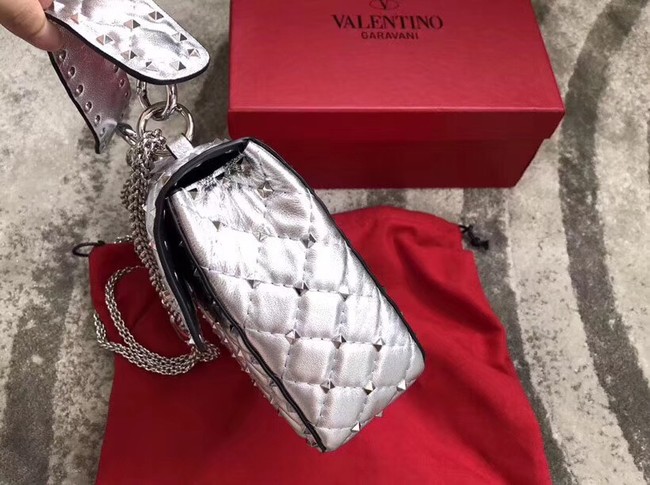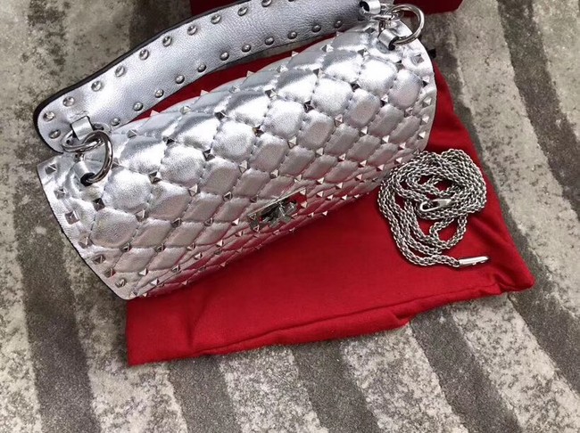 VALENTINO Rockstud medium leather shoulder bag 0123 silver